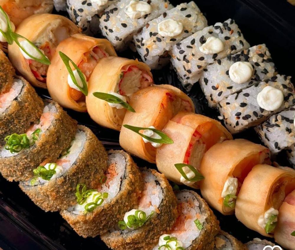 12 hots de kani, 12 uramakis de skin, 10 haru hot de salmão, 6 hot especial